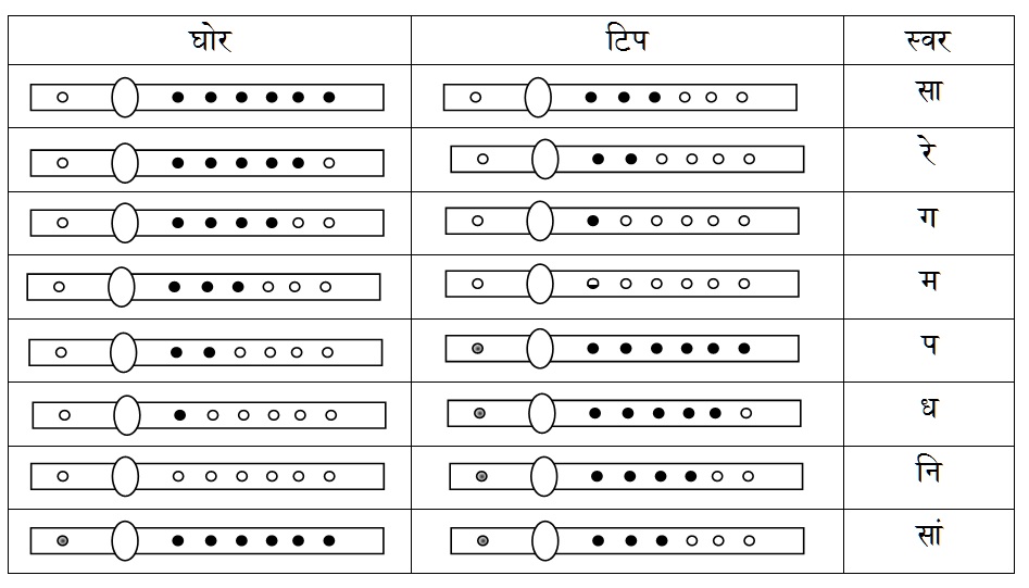 सा(षडज), रे(ऋषभ), ग(गंधार), म(मध्यम), प(पंचम), ध(धैवत), नि(निषाद)