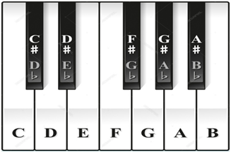 | Notation | C# | D# | F# | G# | A#/Bb | |||